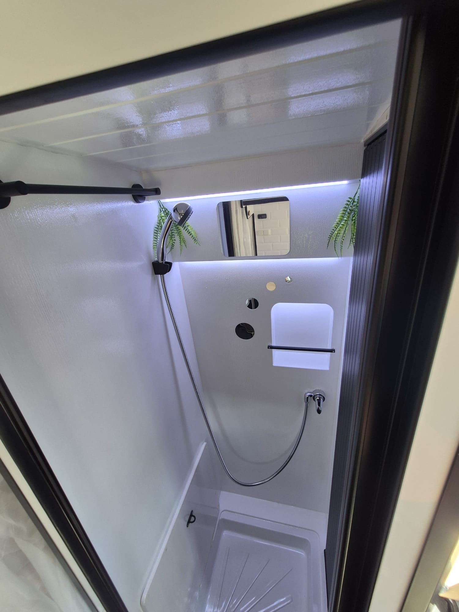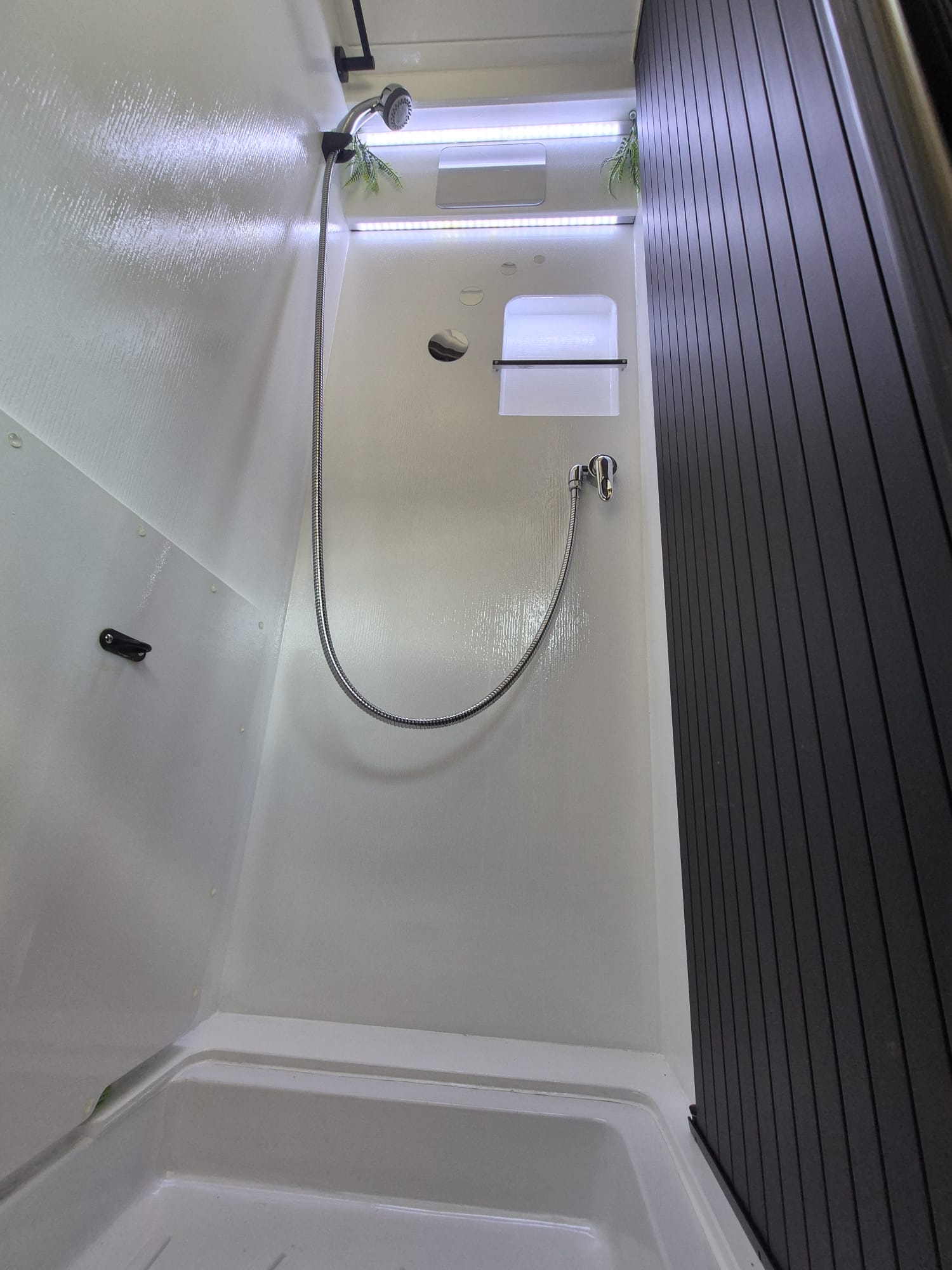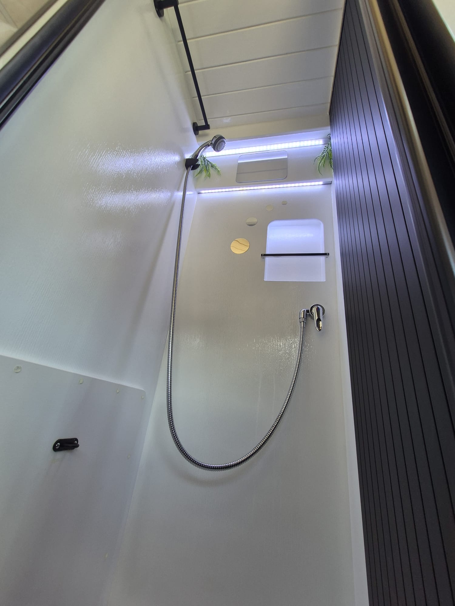 Este proyecto incluye un baño con ducha interior con agua caliente y ducha exterior también con agua caliente, ideal tras un día de playa o montaña.